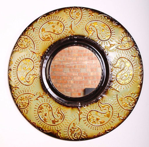 Mid Century Modern Round Wall Decor Mirror, 30" Diameter, Green Copper Patina with Gold Highlights