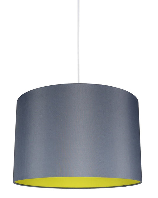 Original price $99.99 - Original price $99.99Original price$99.99$99.99 - $99.99Current price $99.99| /Complete pendant light including drum shade in gray cotton with yellow lining and metal ceiling assembly. Shade measures 15 1/2" across the top, 1...