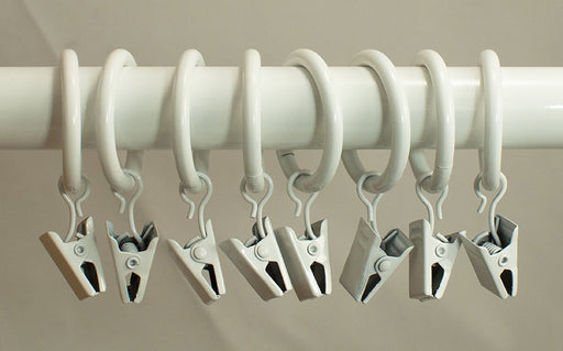 Metal Curtain Drapery Rings with Clips, 8 Pk, 1-inch Inner Diameter, Fits up to 3-4 inch Rod