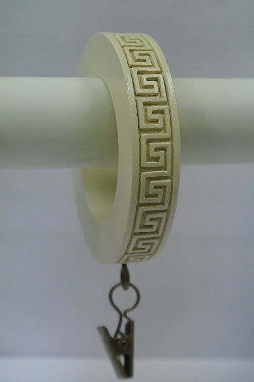 Set of 14 Greek Key Designer Curtain Rings in Ivory