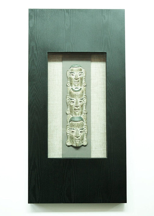 Wood Veneer Framed Polystone Figurine Sculpture Over Linen Wall Art Decor, 20"x40"