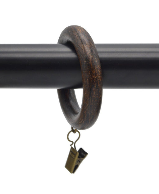 Wooden Curtain Rings with Clips, 1 7/8 Inches Inner Diameter