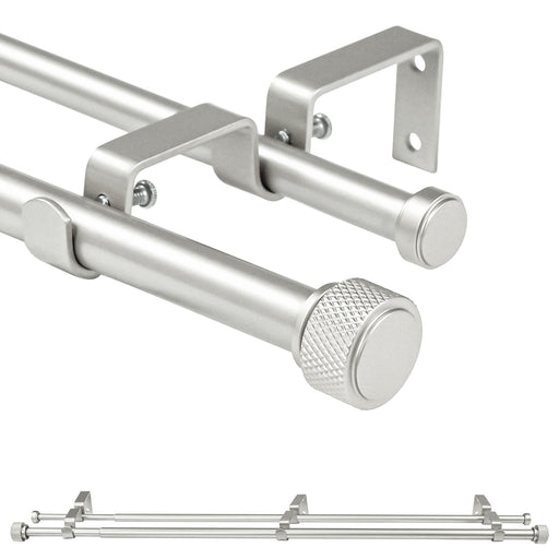 Urbanest 5/8" Diameter Adjustable Double Drapery Curtain Rod Set with Poignee Finials, 28"-48"/48"-84"/84"-120", Gun Metal, Pewter, Matte Gold