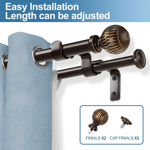 Urbanest 5/8 Inch Adjustable Double Curtain Rod Set with Volle Ball Finials, 28"-120"