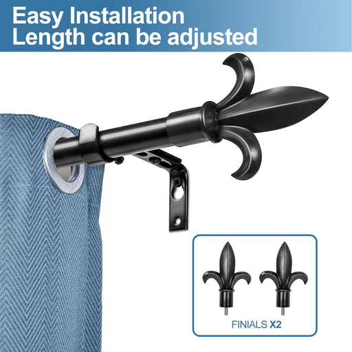 Urbanest Classic Forged Iron Fleur De Lis Window Drapery Rod Set